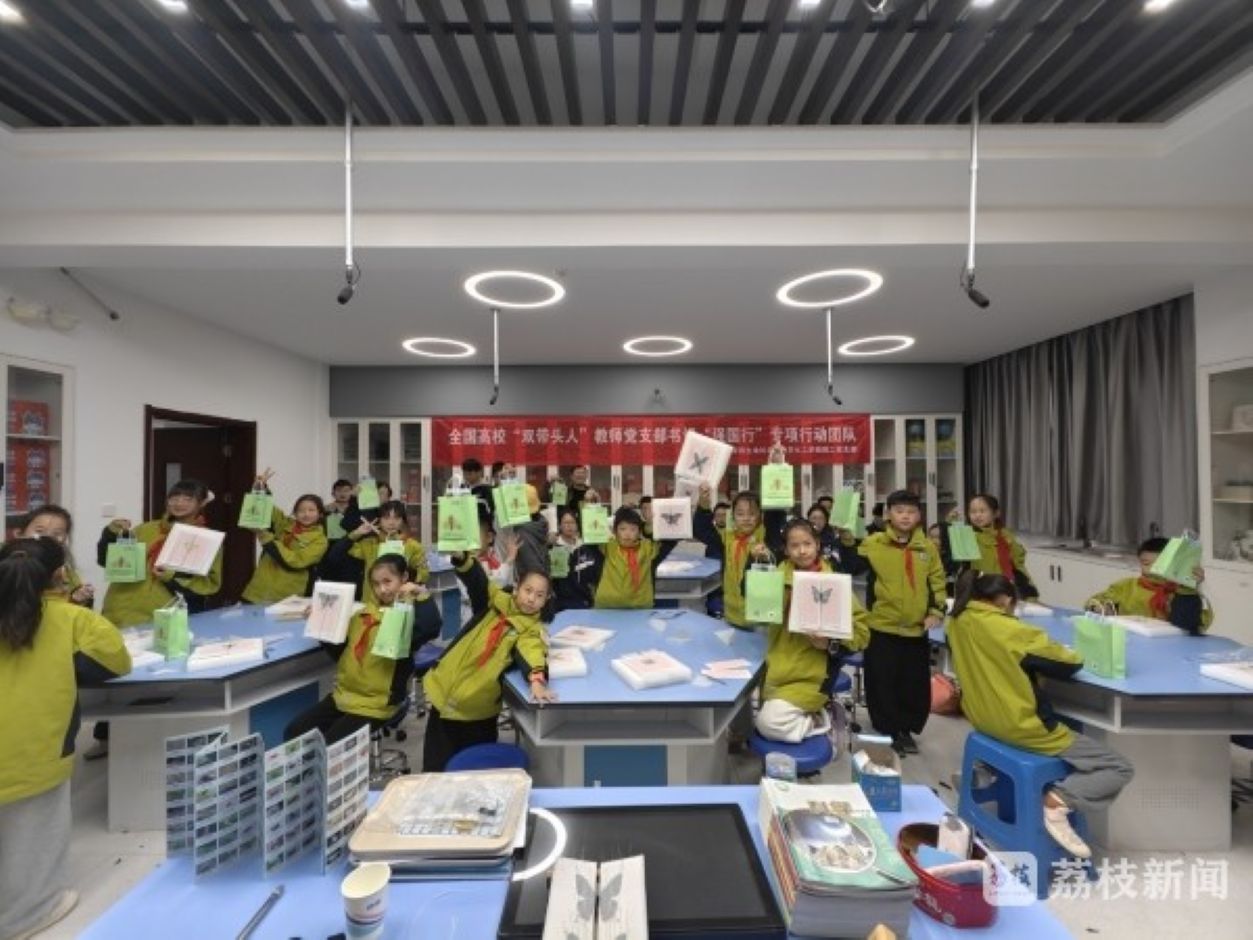 宣讲结束后,师生共同走进该校生物多样性博物馆(江苏省科普教育基地),馆内40余万号动植物标本让人叹服。该校生命科学与化学化工学院宋志顺教授带来《世上物种千千万,为啥昆虫占大半》科普讲座,并指导同学们动手制作蝴蝶标本,在实践互动中传递科学魅力,实现思政教育与科学素养教育的有机融合。