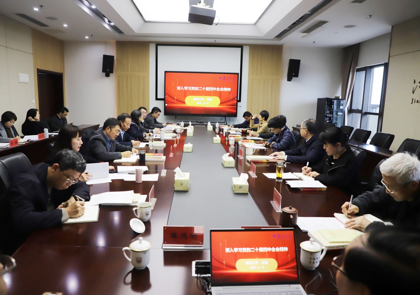 12月19日下午,校党委理论学习中心组在崇德楼318会议室召开集中学习研讨会,深入学习贯彻党的二十届四中全会精神和习近平法治思想。党委书记王鲁沛主持学习并作主旨发言。校领导及相关职能部门负责人参加学习。
