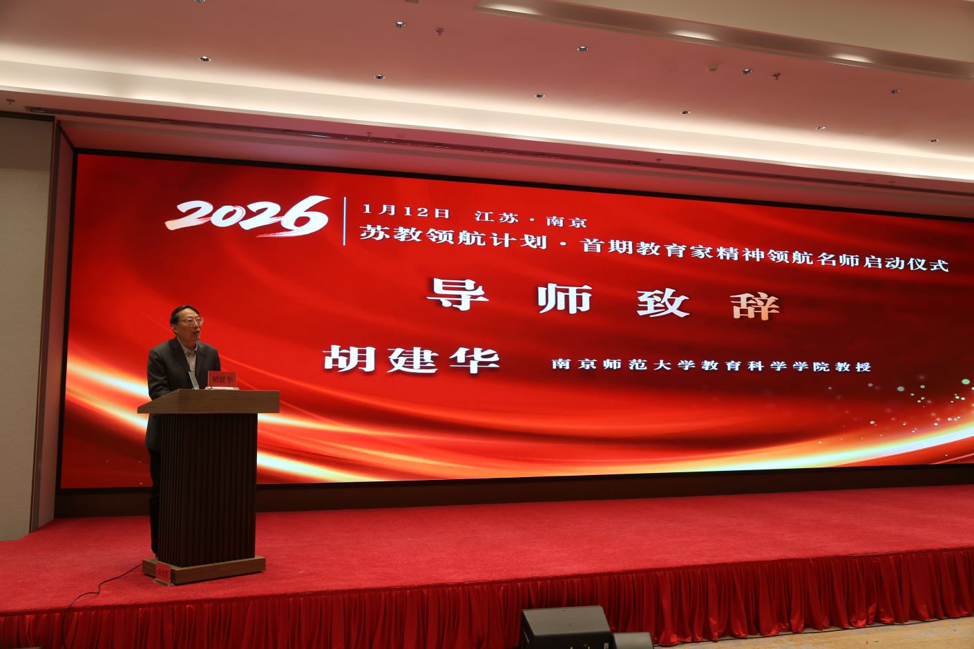 1月12日上午,“苏教领航计划·首期教育家精神领航名师项目”启动仪式在南京隆重举行。江苏省教育厅教师工作处处长张卫星,我校党委常委、副校长,省师干训中心常务副主任(兼)皇甫立同,全国知名教育专家以及全省基础教育一线的50位首期领航名师培养对象参加启动仪式。