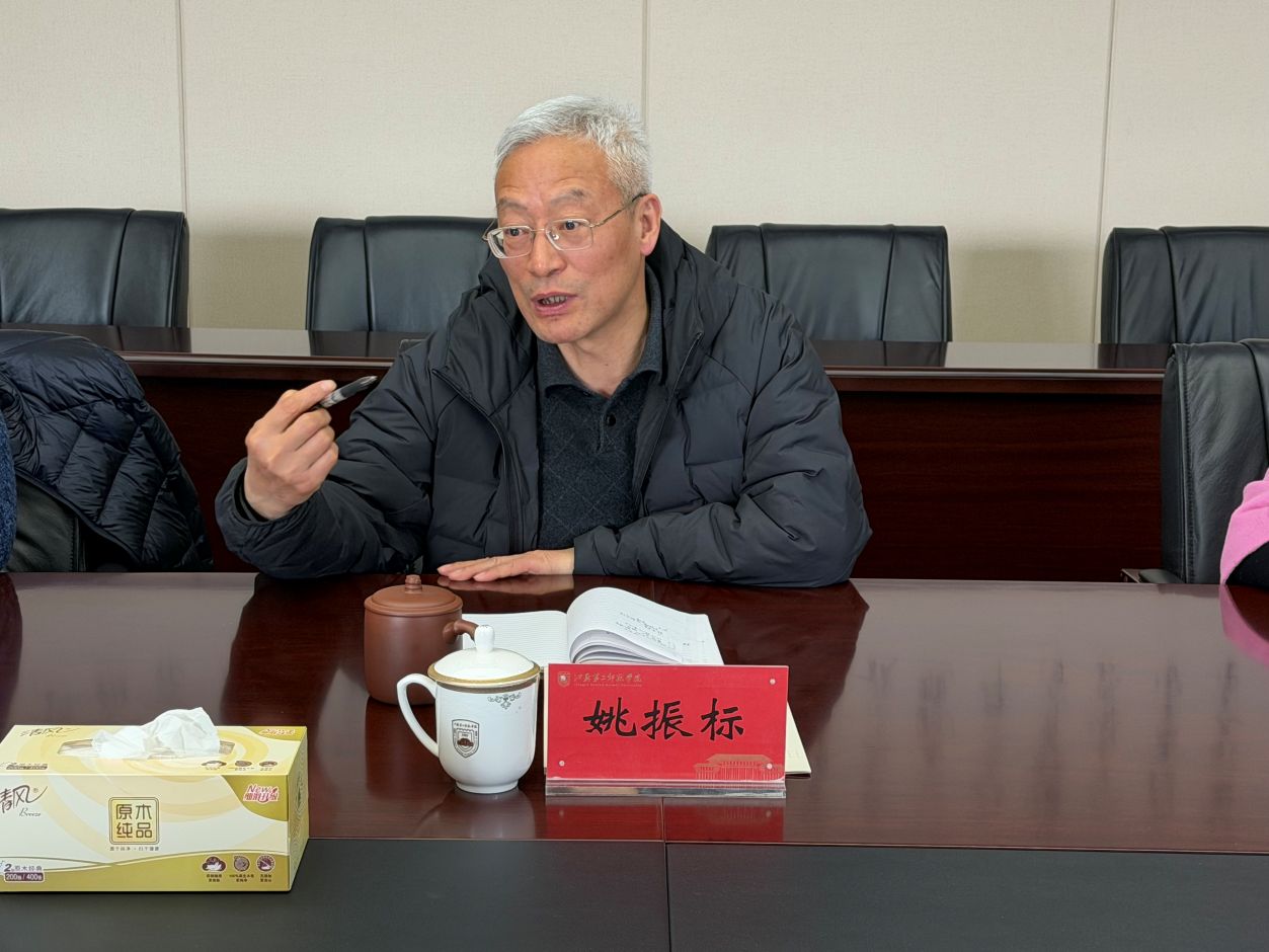 姚振标致欢迎词,他详细介绍了石湫校区建设与启用全过程的经验做法,重点分享了项目招标、资产搬迁、校区接收管理及后勤服务保障等方面的具体举措与运行机制。