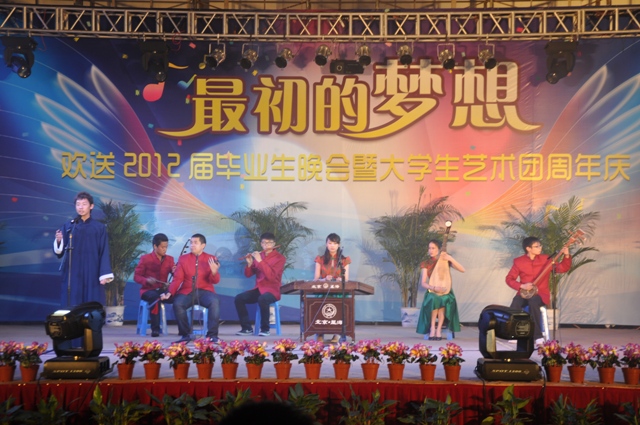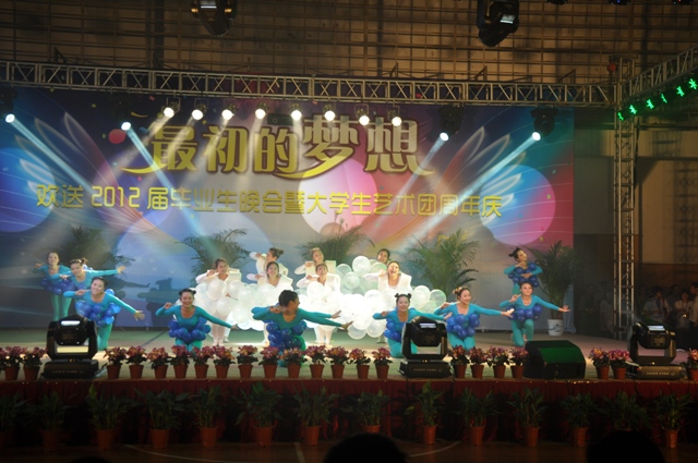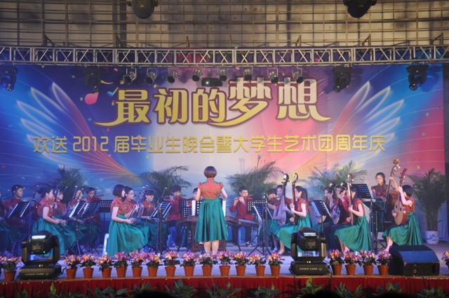 6月6日晚,"最初的梦想"--欢送2012届毕业生文艺晚会暨大学生艺术团周年庆在草场门校区体育馆盛大举行,我院大学生艺术团的同学为观众献上了一场视听盛宴,来自三个校区的数百名学生观看了演出。