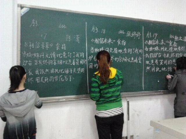 4月16日晚六点,十佳园丁之粉笔字比赛在浦口校区成功举行。比赛分设三个考场。选手依据号码条,四人一组,限时五分钟,在黑板上抄誊指定内容。评委依据书写笔画、板面整洁、板书布局等细则进行评分。各位选手自信满满,从容不迫。板书或秀丽,或刚劲,显示了选手们不俗的功底。