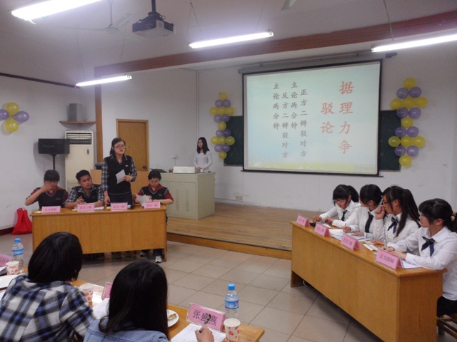 4月8日晚,经过初赛的激烈角逐后,四个班进行了趣味辩论赛复赛。复赛为4进2赛制。辩论每每进入自由辩论环节,现场的火药味便会爆增,现场观众的气氛也达到了最高潮,台下不时响起雷鸣般的掌声。赛后的点评也是一个亮点,在"评说风云"这一环节,评委一语道破正反双方选手的优缺点,无不让现场人员叹服!最终,11化普班和11精化班进入决赛。