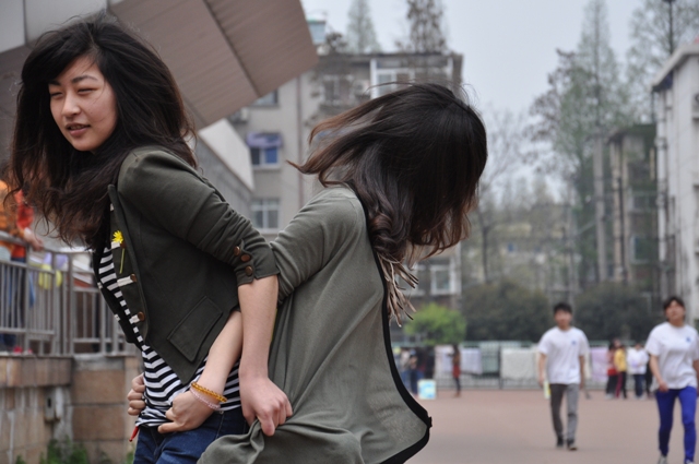 4月8日下午,"最佳拍档"活动在操场上火热进行。比赛分为初赛和决赛,初赛安排有"心有灵犀","双龙戏珠"等环节,决赛为"挑战1+1"。"心有灵犀"环节要求一名选手给予提示,另一名选手猜词。提示者不可借助道具,只可通过肢体语言提示猜词者,猜词者边猜词边跳绳。这个活动需要选手之间具有良好的默契和配合能力。提示同学手舞足蹈,猜词同学汗流浃背,观众喝彩连连,笑声不断。"双龙戏珠"环节要求队员背靠背,手拉手,夹住气球,从起点运到终点,一旦气球被压爆就需回到起点,重新再来。"挑战1+1"要求选手通过一系列考验团结合作能力的热身活动后接着进行答题,最后以时间长短排出名次。比赛如火如荼,气氛紧张热烈,喝彩声此起彼伏......
