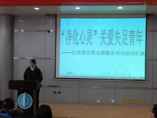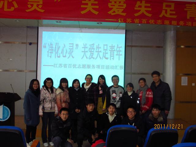 12月21日下午,我院青年志愿者协会教管院分会举行了团省委百优志愿服务活动--"净化心灵"关爱失足青年总结报告会。