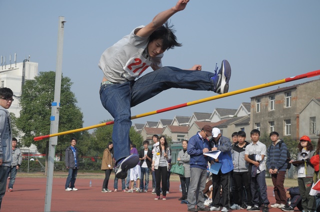今天的校园是我们的,今天的操场是我们的,今天的观众更是我们的。听说,数信院董余佳同学在脚踝受伤的情况下,以1.83米的成绩破了男子跳高的纪录,并取得比赛的最终胜利。他谈到今天的比赛,称今日有三幸:能遇到跟自己实力相当的对手,是一幸;能适应比赛的节奏,是二幸;身后的加油鼓励,是三幸。