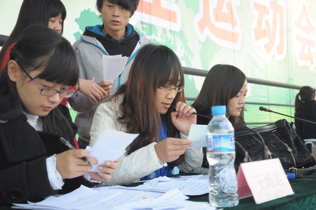 主席台上铺满了一张张充满着激情的来稿,通过一次次细致投入的审阅,广播台的成员用动听的声音将这一份份美好的祝福传递给每一位在赛场上挥洒汗水的运动员,以及每一位严谨认真的工作人员。