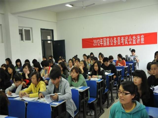 为了让广大的教院学子对国家公务员考试有所了解,10月19日下午,由院学工处大学生就业指导中心主办的"2012国家公务员考试公益讲座"在浦口校区教学楼208举行。此次讲座引起了学生广泛的关注和热情参与,教室坐满了听众。讲座历时一个半小时,由华图公务员考试研究中心研究员,哲学硕士卢霞老师主讲。