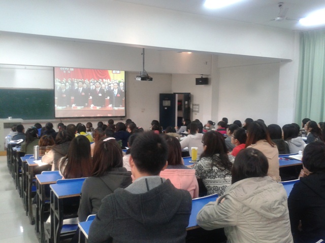 11月8日中午,中文系组织学生党员、入党积极分子、学生干部在浦口校区227教室收看了党的十八大开幕式重播,并召开座谈会,认真交流学习体会。各班辅导员、班主任参加座谈会。