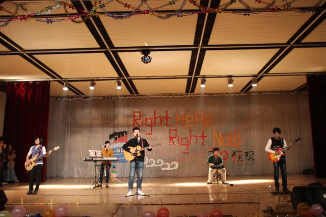2012级新同学并庆贺2013年新年的到来。微电影、人人墙滚动信息、舞蹈、歌曲、话剧、乐器合奏、走秀等节目精彩纷呈,校园乐队Fiver组合倾情献唱。台下掌声雷动,欢声震天。