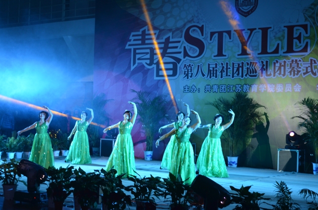 晚会上,老同志们表演了舞蹈——《送你一枝康乃馨》。绿色的裙子在斑斓的灯光下显得格外飘逸,表演者老当益壮的精神面貌赢得了台下观众的阵阵掌声。