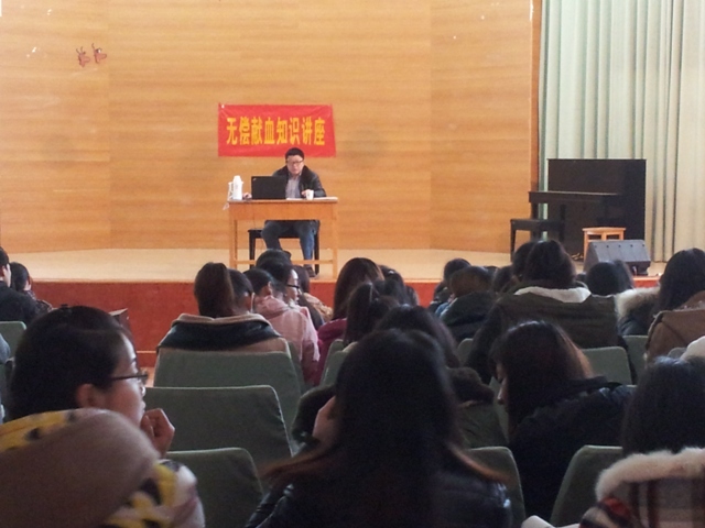 为使同学们增强对无偿献血知识的了解,加深对无偿献血意义的认识,日前,地理系学生会联合初教系学生会、物理系学生会,邀请江苏血液中心的王益平医师来到小行校区,为同学们开展了一次无偿献血知识普及教育讲座。