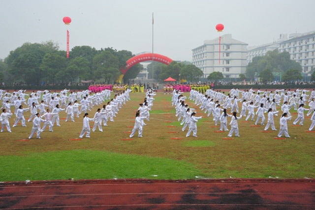 身着代表院系特色的服装,踏着整齐的步伐,喊着响亮的口号阔步向前——方阵用自己的口号诠释着院系的风采、彰显了青春的活力。在行进过程中,他们有的表演如俄罗斯方块般的队形变换,有的表演啦啦操和舞蹈,有的组成了元素周期表,在田径场上形成了一道道独特的青春风景线。在激越的音乐声中,团体操“青春飞扬”表演活力四射,同学们用自己的才艺将运动会的热情引燃。动感十足的舞蹈展现着青春活力,舒缓的太极展现了我院学子的精气神,飘逸柔美的扇子舞象征着我们美丽的校园,气贯长虹的舞龙表演把气氛推向高潮,同时也是在祝愿我院各项事业蒸蒸日上。表演充分展示了我院学子的风采,传递了团结协作、奋发向上的青春正能量。