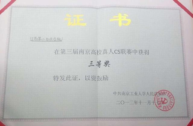 [学工处]我院国防协会在第三届南京高校真人CS联赛中获得三等奖