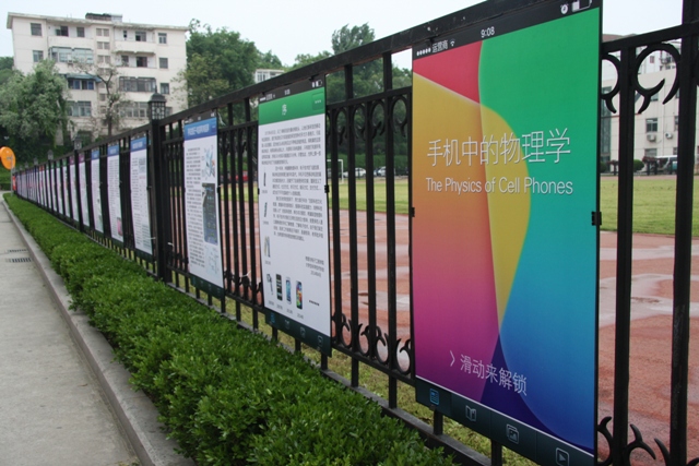 4月24日、29日,由物理与电子工程学院大学生科学技术协会主办的“手机中的物理学”科普展览在草场门校区、浦口校区和小行校区分别展出。该展览由郭云均、陈青、胡丹等老师具体指导。