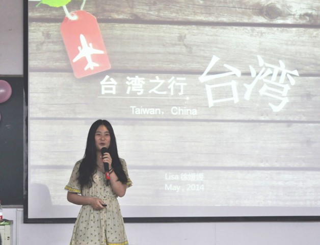 徐媛媛用俏皮的语言向大家介绍了台湾的秀丽风光,风土人情以及自己学习生活的点滴,尤其是全英文教学带来的挑战。台湾同学们的友好以及台湾各种有趣的风俗习惯让大家心驰神往。