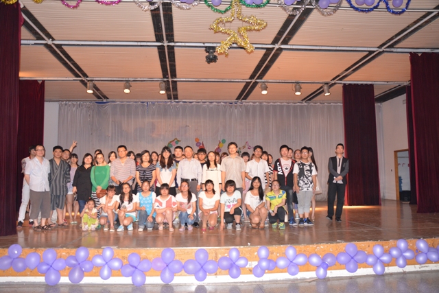 C.V.团”。本次晚会节目形式多样,歌曲、舞蹈、书法、相声、跆拳道等百花齐放。演出过程中所有的参会老师以及学生代表也上台进行义演募捐活动,将晚会带向一个高潮。