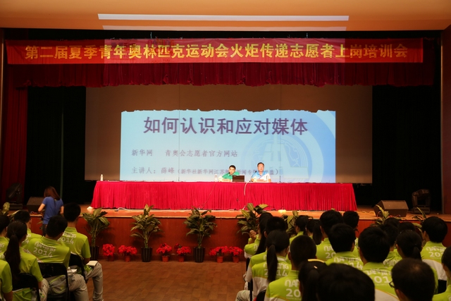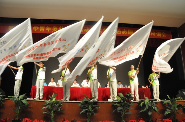 培训开始前,青奥组委会文化教育部部长焦勇为火炬传递志愿者代表授旗,授旗仪式标志着“分享青春线”和“共筑未来线”火炬传递工作的正式启动。