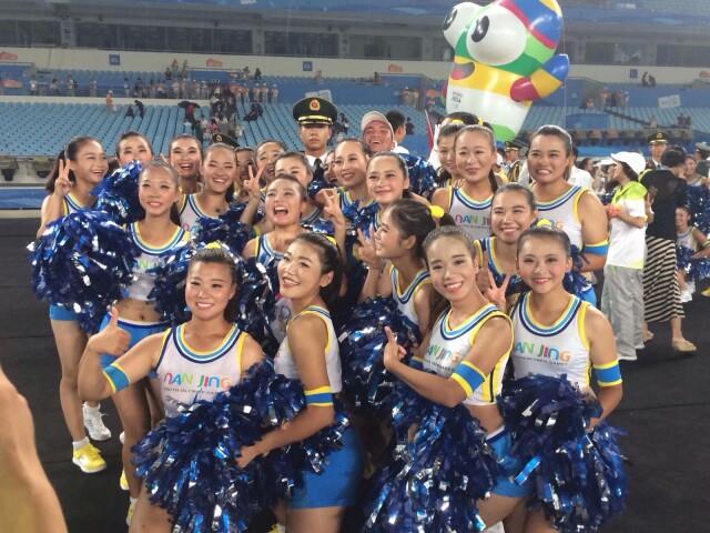 我校啦啦操队参加了刚刚结束的南京第二届夏季青年奥林匹克运动会的闭幕式文艺表演。啦啦操队的十余名队员与众多的表演者一同用自己的激情、汗水,将青奥会成功的喜悦、离别的不舍、未来的向往充分地表达了出来。