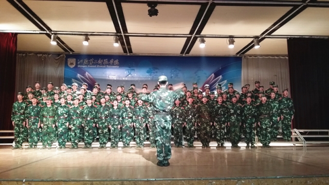 比赛中,同学们演唱了《团结就是力量》、《新兵日记》、《军中绿花》等耳熟能详的革命歌曲。所有学生精神抖擞,气势高亢,充分表现了大家对这次大合唱比赛的重视和用心。比赛期间,宋参谋与司南处长的精彩点评与表演把整个比赛活动推向高潮,现场掌声不断,气氛热烈。