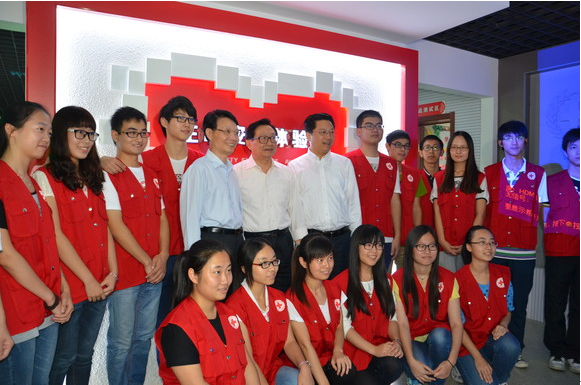 活动中,志愿者们在鼓楼区红十字会凤凰博爱家园生命安全体验馆迎来了中国红十字会会长华建敏一行的视察。江苏省、南京市领导杨卫泽、何权、陈绍泽、靳道强、项雪龙,南京市红十字会领导刘霞、张杰、何患君,鼓楼区领导杨学鹏、王根宝、陆敏、梁春燕,鼓楼区红十字会领导陈珺、孙春风、凤凰街道办事处主任周兵等陪同视察。我院四名志愿者各司其职,恪守岗位,用最真诚的笑容迎接每一位领导来宾;馆内的志愿者更是认真详细地为华会长及随行人员展示了体验馆内的各项设施,志愿者们的详细介绍得到了领导们的一致认可。和蔼亲切的华会长不时与我院志愿者亲切交流。活动结束后,华会长与所有志愿者合影留念。