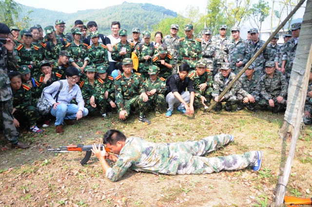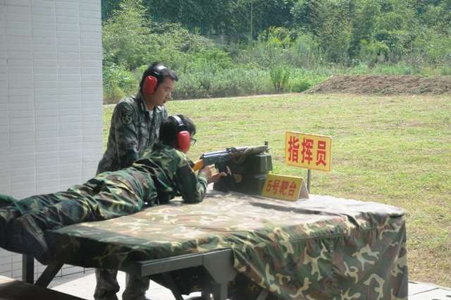 9月28日上午,我院2014年新生军训中涌现出的优秀学员代表赴国防训练基地进行了实弹射击训练,军训办主任、学工处处长刘莹全程参与指导。