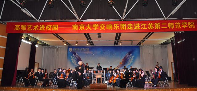 5月24日晚,2015高雅艺术进校园——南京大学交响乐团走进我院,在浦口校区礼堂举行了“中国梦想·世界华音”交响音乐会。流光溢彩、弦音飞扬的音乐会使我院近1000名师生体会到了交响乐动人心魄的独特魅力。