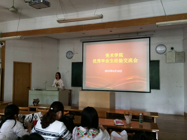 6月18日,美术学院举办“2015届优秀毕业生经验交流会”,大三全体学生参加会议,会议由美术学院辅导员白丽主持。