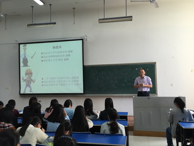 活动由创业导师孙浩乐主讲。他指出移动互联网时代为青年大学生提供了更多创业的机会和选择,新时期江苏“创新创业创优”的三创精神也鼓励大学生积极创业。他阐述了大学生应该如何创业以及创业应该具备的条件。最后孙老师介绍了南京政府对于创业大学生的相关资助政策,并鼓励青年大学生积极创业。