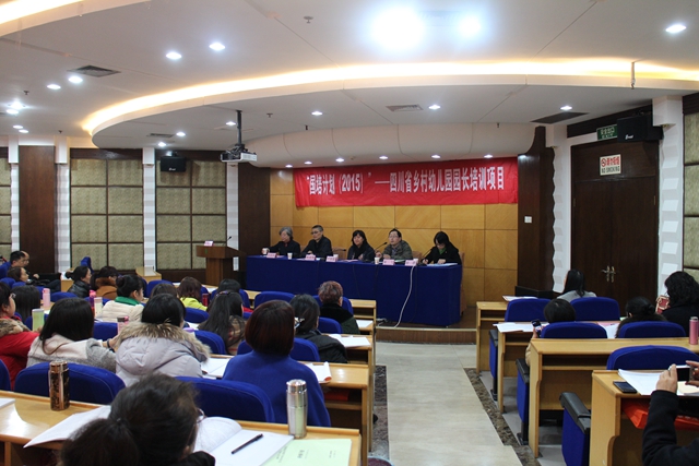 11月30日下午,我校在草场门校区现代教育技术楼一楼报告厅举行“国培计划(2015)”—四川省乡村幼儿园园长培训项目开班典礼。继续教育办公室主任章飞,学前教育学院院长尹坚勤、副院长徐群,鼓楼区教育局副局长肖大明与鹤琴学校校长徐惠湘等出席仪式,活动由尹坚勤主持。