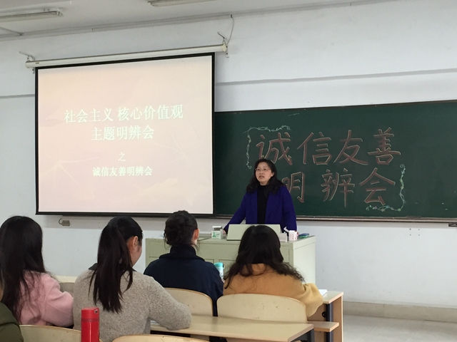 十三位优秀学生党员围绕“诚信、友善”各自发表了看法,强调了“诚信、友善”在当今时代的重要性,劝诫同学们树立正确的价值观。同学们热情参与讨论,对社会主义核心价值观尤其是“诚信、友善”的认识更加深入。