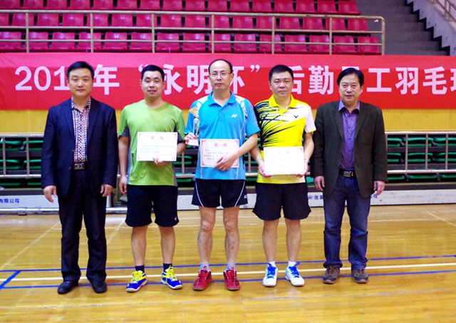 本次羽毛球比赛分男、女单打两个项目,采用单淘汰制赛程,竞争异常激烈。各路选手“八仙过海,各显神通”,纷纷拿出看家本领,奋勇拼搏。最终,何振芳、朱成剑和张雪莲分获女子单打冠亚季军,胡元强、郭永涛和何俊分获男子单打冠亚季军。后勤党总支书记傅磊、后勤处副处长黄大双和南京永明物业管理公司总经理黄山到场为获奖选手颁奖。