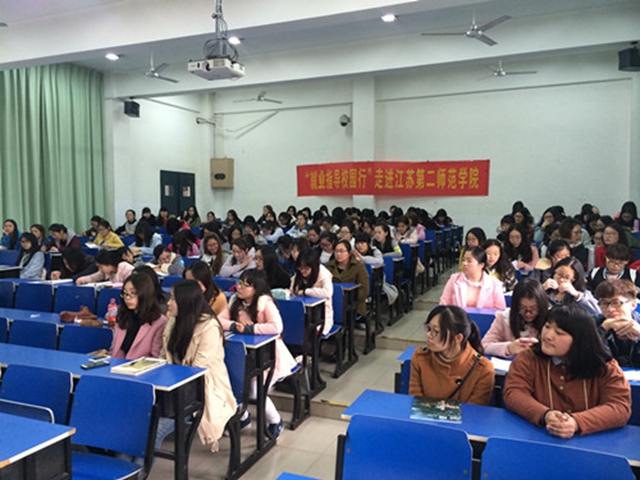 3月30日下午,由南京市人社局主办、南京市就管中心与我校就业办共同承办、南京绿莲网络科技有限公司协办的“就业指导校园行”走进浦口校区开展活动。南京绿莲女大学生就业服务网络平台创始人王静老师给同学们带来了一场精彩的就业指导讲座。