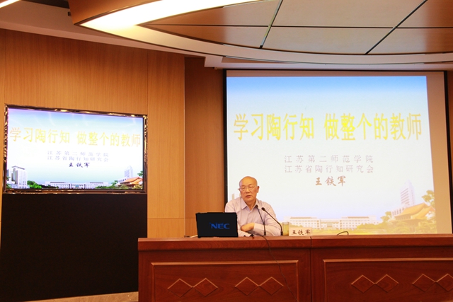 王教授带领同学们学习陶行知、宣传陶行知、践行陶行知,教会大家要用整个心做整个的教师。他从陶行知先生的生活小故事入手,用鲜活的事例让大家认识了一个丰满的陶行知先生形象。通过对陶行知先生教育思想发展过程的深入浅出的讲解,让大家对陶行知先生的教育思想以及陶行知先生教育思想在教育领域的重大影响有了更深刻的理解。“捧着一颗心来,不带半根草去”,陶行知先生用他的实际行动,告诉我们要做整个的教师,就要有独立的思想,有健康的身体和有独立的职业。他勉励大家:作为未来的人民教师,要向陶行知先生学习,学习他拥有宏伟的理想,要勇于改革创新,要有追求真理学做真人的信念,要有博爱、奉献、求真、务实、创新的精神。