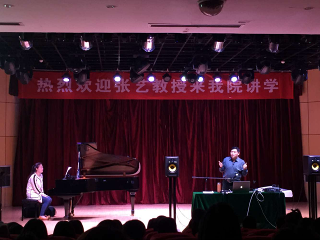 4月20日下午,音乐学院邀请浙江师范大学音乐学院作曲系主任、硕士生导师张艺教授来校,开展了“关于音乐创作之原创作品与钢琴即兴伴奏二度创作关系的若干思考”的主题讲座。党总支书记蒋向红、院长周振亚出席此次讲座。