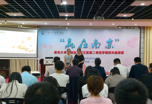 5月25日下午,由招生就业处、团委共同举办的“赢在南京”第四届青年大学生创业大赛校内选拔赛在草场门校区举行。本次大赛邀请了省招就中心创业部部长陈登峰、南京市劳动就业服务咨询中心科长朱玉峰、南京师范大学创业中心主任周玮、南京信息工程大学团委副书记刘伟和昌麟投资创始人吴思雨担任评委。