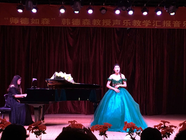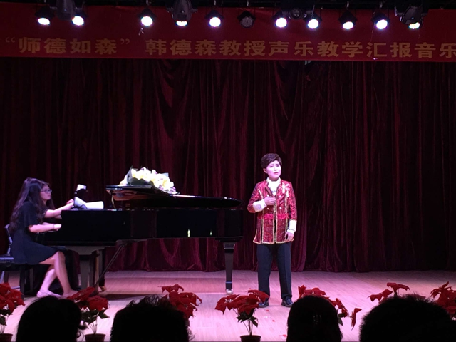 5月26日晚,音乐学院在草场门校区举办韩德森教授声乐教学汇报音乐会。音乐学院党总支书记蒋向红、院长助理王春燕、指导老师韩德森、其他各教研室的老师和全院的学生们一同观看了本场音乐会。