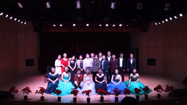 李创同学一曲《大江东去》拉开了整场音乐会的序幕,同学们纷纷上台展现各自的歌唱技艺,最后由李创和许肖两位同学带来的《La darem la Mano》结束了上半场的音乐会。在音乐会间歇休息的过程中,韩德森教授的三位新学生,为大家带来了《我的太阳》和《今夜无人入睡》两首歌曲。音乐会下半场由蒋婷婷同学带来的一首欢快的《玛依拉变奏曲》把音乐会推上了高潮,最后由王梦舟同学带来的《La fleur que tu m'avais jetee》和《Ah!mes amis》结束了本场的音乐会。