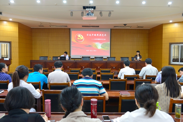 6月15日下午,机关第一党总支在草场门校区511会议室举行“两学一做”学习教育专题党课。机关第一党总支书记章跃一同志为一总支全体党员作了题为《习近平的用典艺术——以系列重要讲话为例》的报告。纪委书记刘青平、副院长潘文来到所在支部参加党课学习。