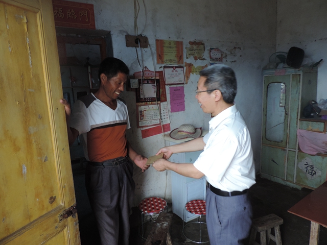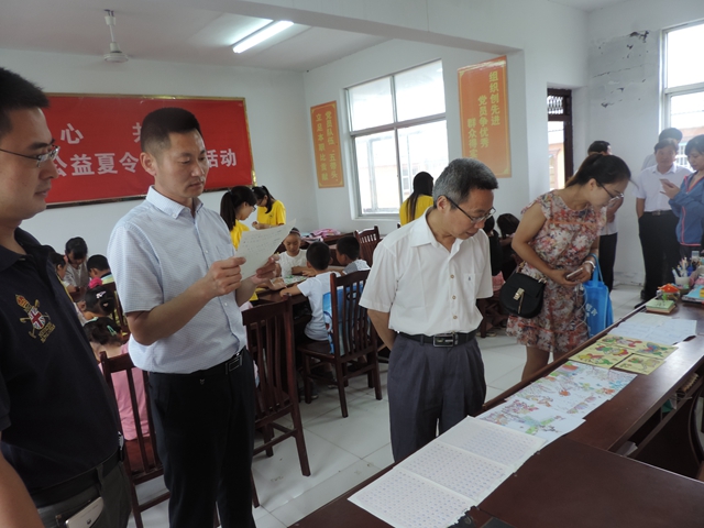 仪式开始前,刘守旗一行5人在灰墩办事处主要领导陪同下看望了经法学院暑期社会实践小分队全体队员和夏令营孩子们,饶有兴趣地参观了夏令营孩子们制作的手工制品,观摩了夏令营课程,并且走访慰问了部分低收入户。