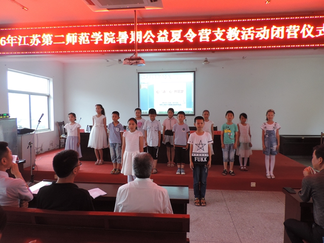 孙国君向本次暑期公益夏令营支教活动圆满结束表示热烈的祝贺。他说,帮扶工作是一项崇高而伟大的事业,扶贫先扶智,教育帮扶是最根本的帮扶。让经济薄弱地区的孩子们接受良好教育,是推进精准扶贫的重要举措,也是教育帮扶的重要工作内容,对于推动涟水经济社会发展,构建全面小康社会具有十分重要的意义。帮扶工作的顺利开展,离不开各后方单位的积极关心和大力支持,特别是江苏第二师范学院领导、师生来到所挂钩帮扶的省定经济薄弱村灰墩办事处南元村,举行暑期公益夏令营支教活动,以实际行动真正把党委、政府和社会各界的关心、关爱送到了困难群众身边,真正实现了教育帮扶与大学生暑期社会实践的有机结合。希望灰墩办事处积极加强与江苏第二师范学院的沟通和联系,认真总结本次活动的成功经验,充分利用江苏第二师范学院的优质教育资源,积极拓宽教育扶贫方式,努力做好低收入农户家庭的教育帮扶工作。