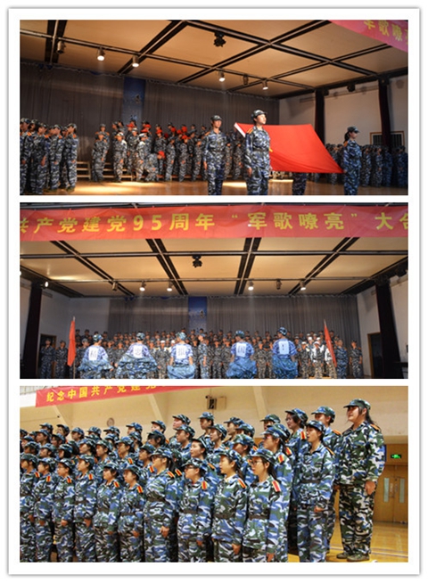 18、19日,我校在草场门校区与浦口校区隆重举行庆祝中国共产党建党95周年“军歌嘹亮”大合唱比赛。学生工作处处长刘莹、招生就业处副处长司南、团委副书记刘姝担任评委,各二级学院参加军训的2016级新生参加比赛。