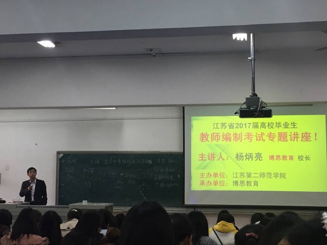 10月26日下午,招就处邀请博恩教育在浦口校区举行了一场面向2017届毕业生的教师编制考试苏北地区面试策略的专题讲座。讲座由博恩教育杨炳亮校长主讲,外国语学院、文学院、教育科学学院等2017届毕业生200多人参加。外国语学院就业专员刘彩玲主持讲座。