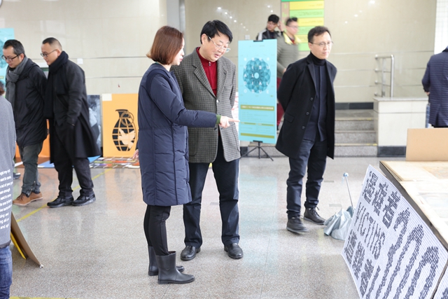 宣传部部长李安林,组织部副部长李铁英,教务处副处长薛瑞东、陈蓓,大学生艺术教育中心主任孙婷,南京创意设计中心主任王子烨一行,南京艺术学院高职院副院长蒋杰,南京平面设计师联盟副主席时澄一行以及其他兄弟院校的领导及部分教师参观了展览,并给予较高的评价。