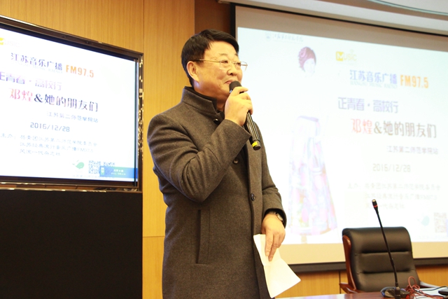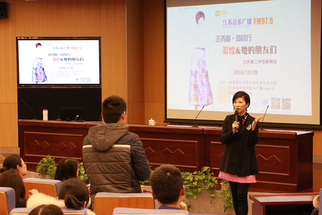 12月28日晚,团委在草场门校区举办行知讲堂——我的青春故事会,邀请江苏著名音乐广播主持人邓煌来校分享青春故事。党委副书记、副院长程建军,团省委《风流一代》杂志社主任周建军,学工处处长刘莹、团委副书记刘姝及200余名学生代表参加活动。