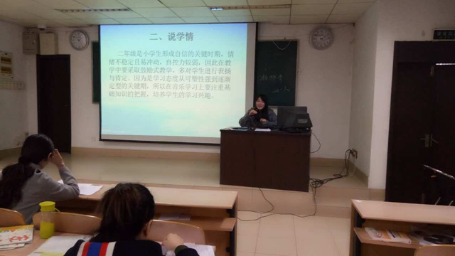 本次说课大赛从教师语言表达、教学态度、授课内容设计、教学流程安排、重难点把握等方面对选手进行了综合考核。十七位参赛者都重视学生的兴趣,有的从谜语或是欣赏图片开始导入所要讲解歌曲,有的则跟着音乐律动跳起舞蹈来。总体而言,各参赛选手准备充分,向大家展现了流畅的讲解、大方得体的言语以及挥洒自如的专业素养。