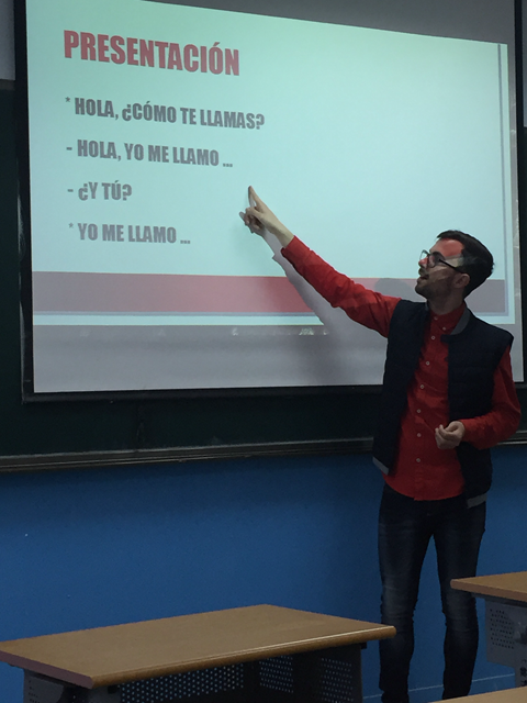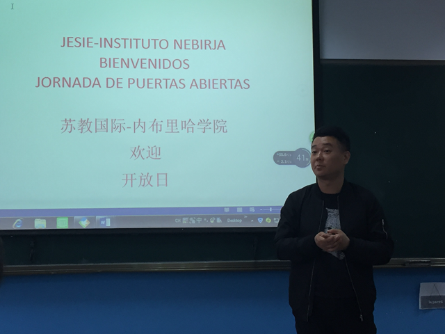 来自西班牙内布里哈大学的老师马里奥为我校学生介绍了西班牙文化,包括西班牙的历史、语言、节日、美食等,还为学生们上了一节西班牙语入门课。西班牙大学联盟代表满曾刚老师介绍了赴西班牙留学的信息。江苏预科学院校长刘海峰鼓励同学们学好西班牙语,为自己的个人发展和国家富强而努力。