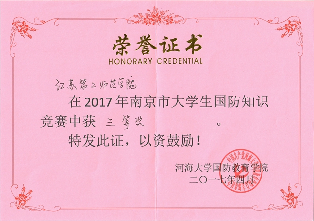 [学工处]我校学生参加南京市国防知识竞赛并获三等奖