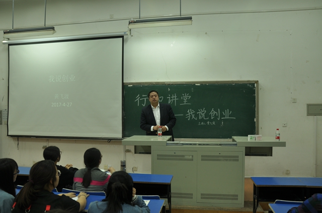 4月27日晚,团委行知讲堂邀请江苏省教育厅“江苏大学创业典型”、“创青春”全国大学生创业大赛评委、南京青梦家教育投资有限公司总经理黄飞渡在浦口校区举行“我说创业”主题讲座。受团委委托,外国语学院党总支副书记黄晓波主持讲座。浦口校区各院系140多位同学听取了讲座。