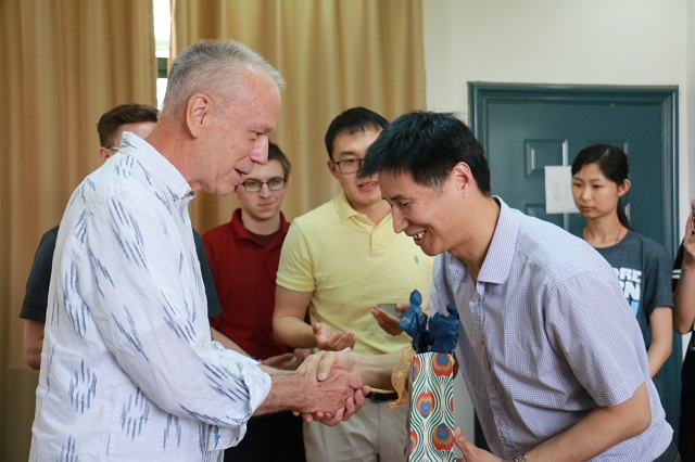 5月26日上午,由教育科学学院承办的美国普渡大学师范生海外学习项目在南京竹山小学正式启动。教育科学学院副院长陈国庆、党总支副书记张志行、竹山小学校长王东敏与来自普渡大学的11名师生参加启动仪式。 作为我校与普渡大学深化校际合作的重要举措,普渡大学师范生将在竹山小学开展为期15天的课程实习与实践研究。本次启动仪式的顺利开展,拉近了中美师范生的交流联系,促进了中美文化的互动学习,推动了我校与普渡大学的进一步合作。